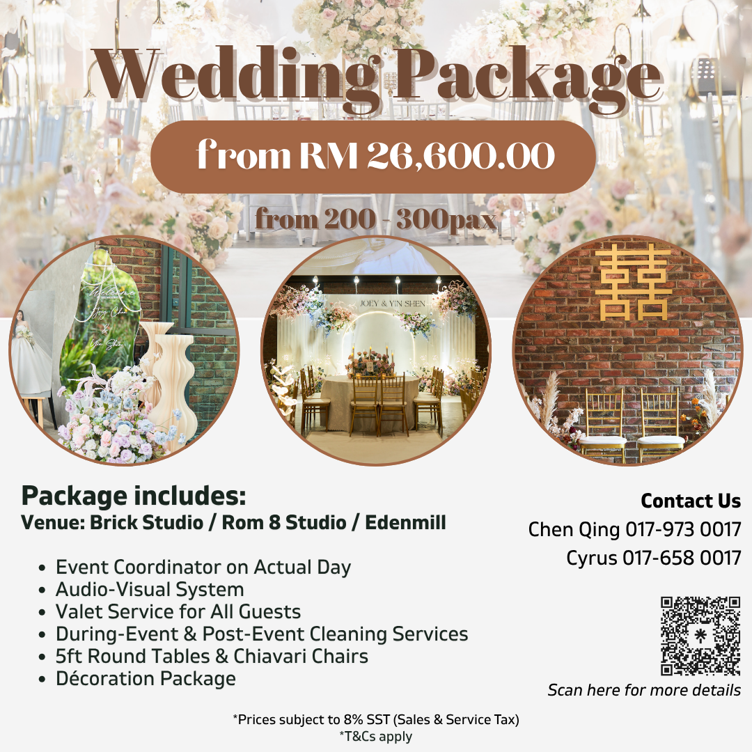 It is complemented by two distinct reception areas — one with exposed brick walls, steel accents, and floor-to-ceiling glass panels; the other with cement flooring, a large window, and a sliding glass door that opens to a private patio. Whether you’re hosting a stylish soirée or a grand celebration, Edenmill sets the stage for impactful, unforgettable events.